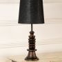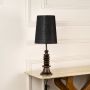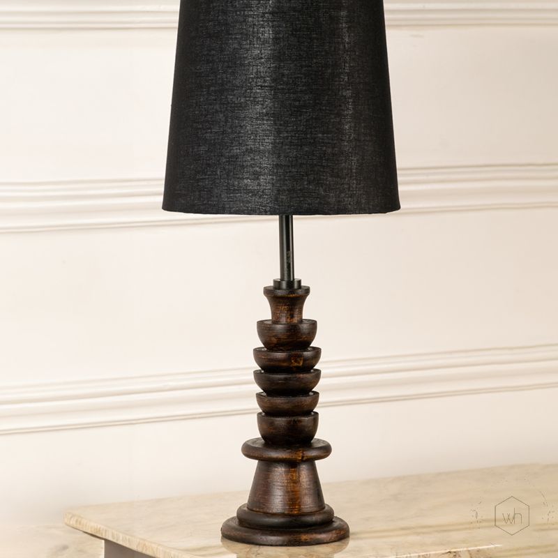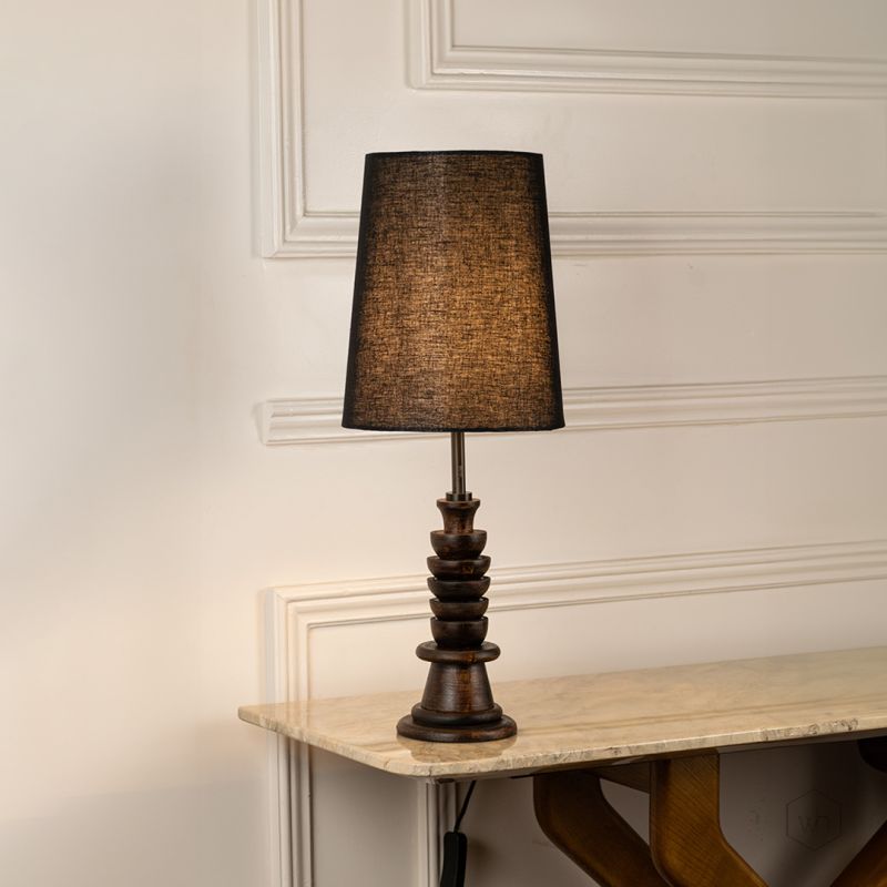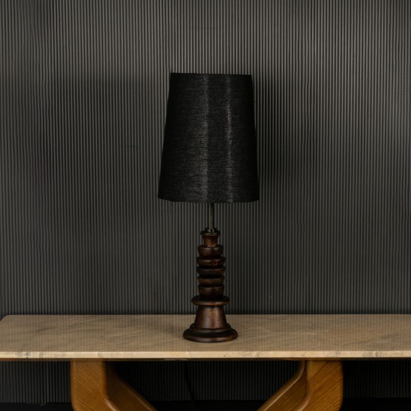 This table lamp combines vintage charm with modern edge through its turned wood base and bold black fabric shade. The contrast adds depth and richness, making it a stylish lighting accent for eclectic or moody interiors. The product video highlights the materials and form with graceful zooms and ambient lighting demos.