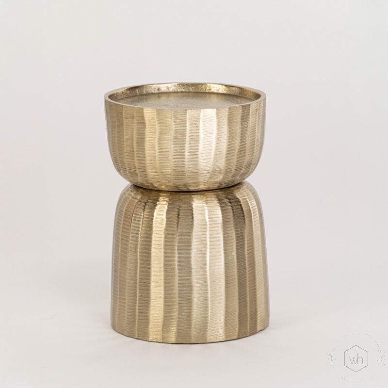 The Tuscany Candle Stand in Gold brings a bold, sculptural presence to your decor. Made from solid aluminium with a rich gold finish, this candle holder features a textured surface and a sturdy, artistic form that doubles as a decorative accent even without a candle.