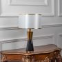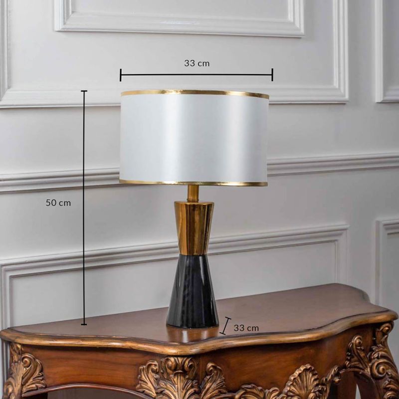 This lamp features a premium metal and marble base, combining durability with an elegant aesthetic. The fabric lampshade adds a soft, luxurious touch to the design.