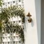 Outdoor wall-mounted lantern light enhancing the exterior decor with warm illumination.