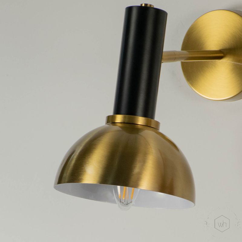 This product video highlights a sleek wall sconce combining matte black and brushed brass finishes. Featuring a dome-shaped shade and minimal silhouette, the video demonstrates its warm lighting glow with dynamic angles and close-up shots.