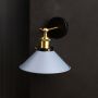 Introduce a dash of vintage charm to your interiors with this striking wall sconce featuring a muted blue conical shade and elegant brass fittings. Its sleek profile and bold contrast offer both functional lighting and a stylish statement.