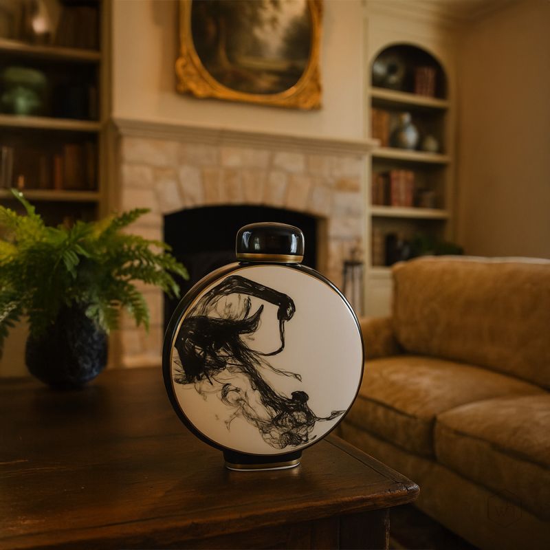 This jar is a decorative piece designed to enhance home interiors. It can be displayed as a standalone accent or paired with other decor items.