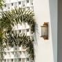 The Vista Outdoor Wall Light in bronze offers a durable metal frame with glass panels, providing both functional lighting and an elegant touch to your outdoor spaces.