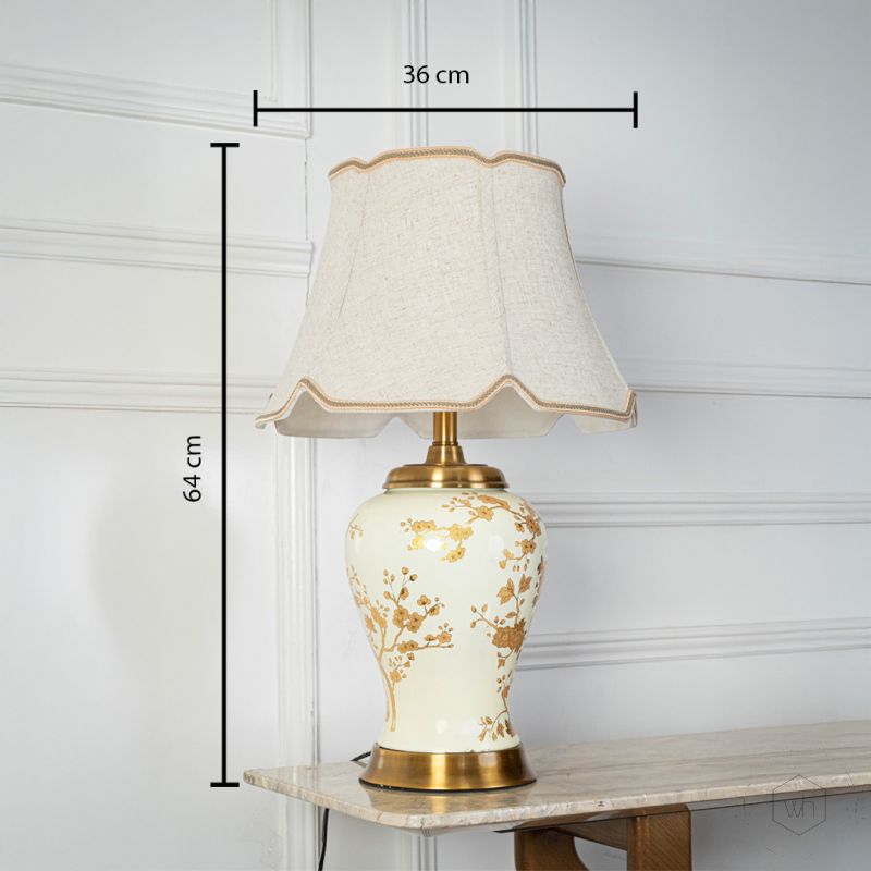 Color: White ceramic base with a beige cotton lampshade, offering a harmonious color scheme.