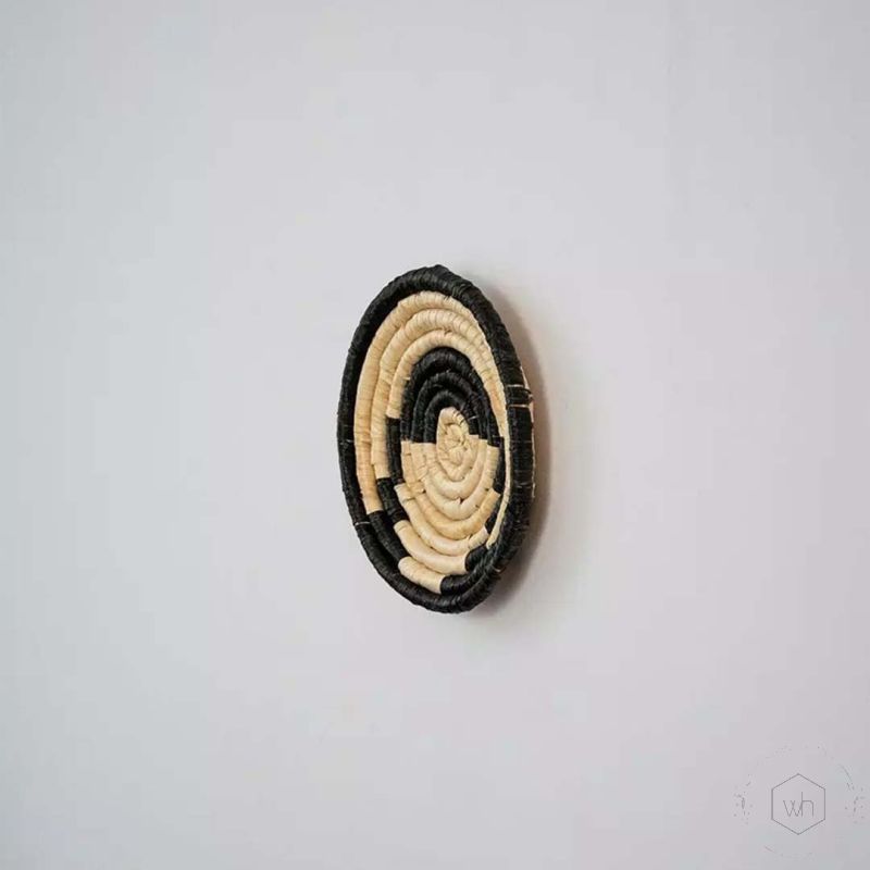 Youthful Flower Handwoven Sabai Grass Hanging Wall Basket Small - Black & Beige